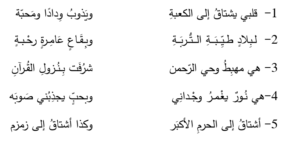 اقرأ الأبيات الآتيه من قصيدة “أشواق إلي الكعبة” ثم أجب عن الأسئلة الآتيه :